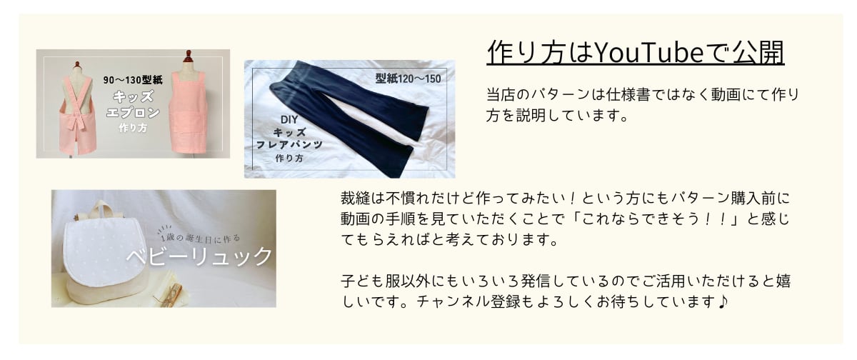 涼しげなキャミワンピースの型紙です。 肩ひもはリボンで丈調節可能◎ 成長に合わせて長く着られるデザインです。 胸元にはゴムが入っているのでお着替えもらくらく。 シンプルなデザインなのでミシン初心者さんにもおすすめです。 夏休みのハンドメイドにぜひチャレンジしてみてください♪ TシャツやロンTとの重ね着でオールシーズン着られるデザインです。 季節に合った素材選びで一年中楽しめる型紙となっています。 ■サイズ展開:80 / 90 / 100 / 110 / 120 / 130 / 140 ■難易度:★★☆☆☆ ■できあがり寸法 80(着丈48cm) 90(着丈52cm) 100(着丈58cm) 110(着丈64cm) 120(着丈70cm) 130(着丈76cm) 140(着丈82cm) ■商品セット内容 ・型紙・・・A3用紙を二つ折りにした状態でお届けします。一部お客様自身で貼り合わせ作業をお願いしております。型紙に関する詳細は下記リンクをご確認ください。 https://coco-pattern.com/how-to-attach-the-pattern-pieces/ ★作り方はYouTubeにて公開しています。ご活用ください。 https://youtu.be/VhG1-DVJnHM ■ミシン ・直線縫いミシン ・ロックミシン(家庭用ミシンの裁ち目かがりでもOK) ■推奨生地:薄地~中厚地程度の布帛生地。綿、麻、ポリエステルなど ■その他の材料 ・平ゴム11mm巾(10~13mm巾までを推奨) ■商用利用: 可 -------------------------------------------------------- 【suume.pattern(シューミー.パターン)】 子どもと過ごす日常に、手作りのぬくもりを。 「suume.pattern」は、子育て中のママが“今作りたい”と思える実用的で可愛いアイテムをテーマにした型紙ブランドです。 初めてでも作りやすく、日々の暮らしに寄り添うデザインをお届けしています。